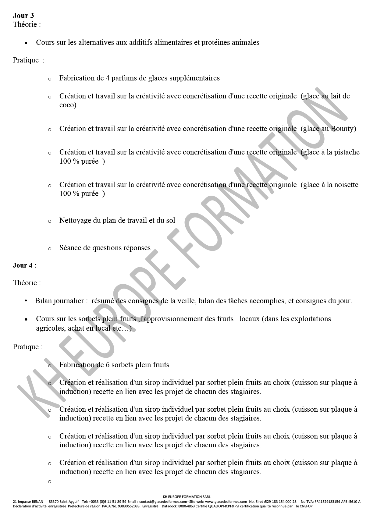 Nous vous donnerons, des fiches de recettes, en accompagnement des cours, vous apprendrez comment personnaliser vos glaces, comment les équilibrer, et comment créer vos propres recettes, pour Devenir un véritable alchimiste du goût, afin d’obtenir des saveurs innovantes, et enchanter le palais de vos clients.
